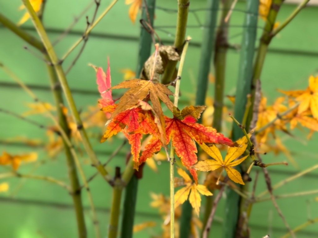Here’s our little Japanese maple as she decided to “seasonally change” her outerwear recently.