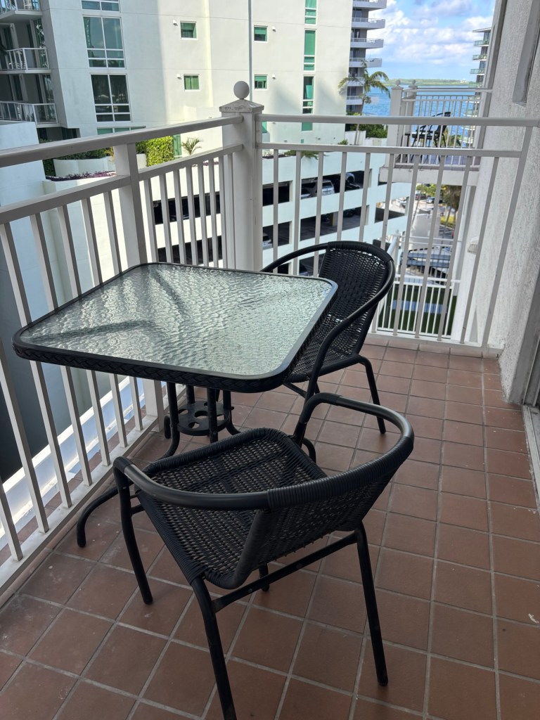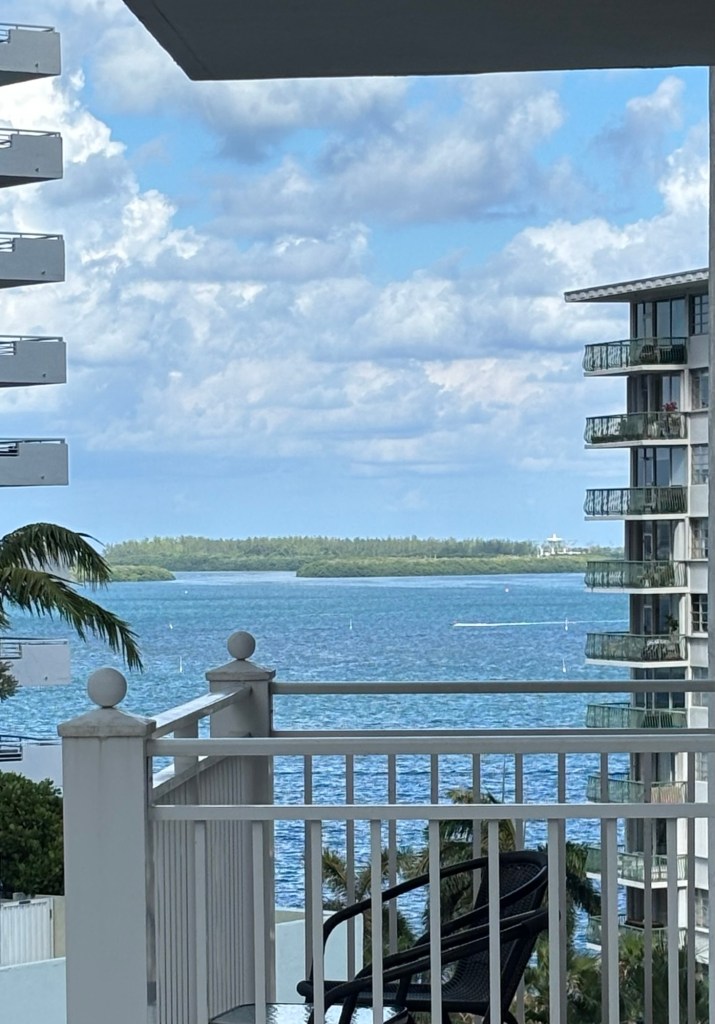 Our place has a little balcony that … sorta looks out over Biscayne Bay (if you dangerously stretch your neck).