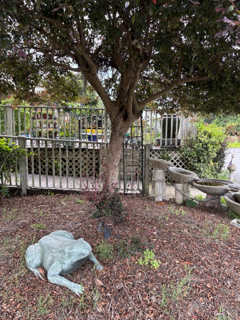 While we were sitting in the shade, chatting with Pat, Mary and guests, for some reason HR (Husband Robert for any newbie readers) brought up the pitiful fact (pitiful since we were sitting in a glorious backyard garden) that he and I only have some potted plants and a tiny tree lawn in front of our place in downtown Savannah. But that we are looking to plant some milkweed to draw the butterflies!