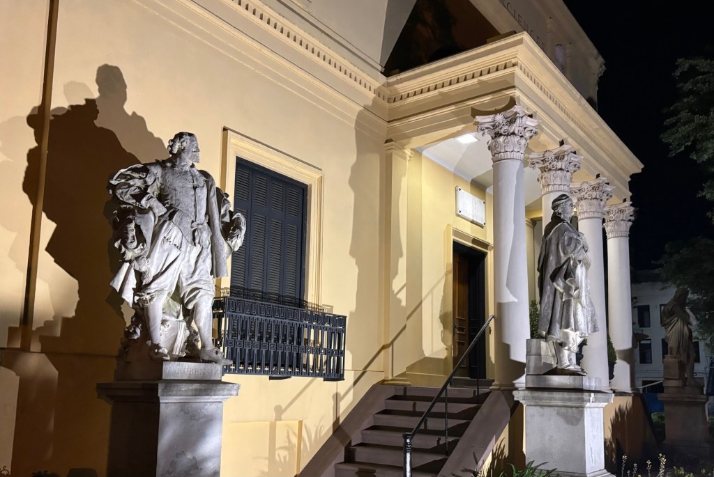 Robert and I were walking through Telfair Square here in Savannah last night after dinner. The statue-laden Telfair Academy (the first public art museum in the South, 1888) shone incandescently, perhaps a bit eerily, exuding both pride and remorse in our city’s problematic past.