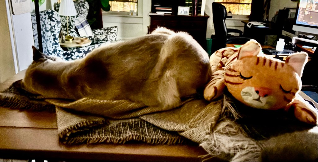 2. Finding Benny and best buddy Huggy Kitty still fast asleep when I walked into the living room at about 6 am the other morning.