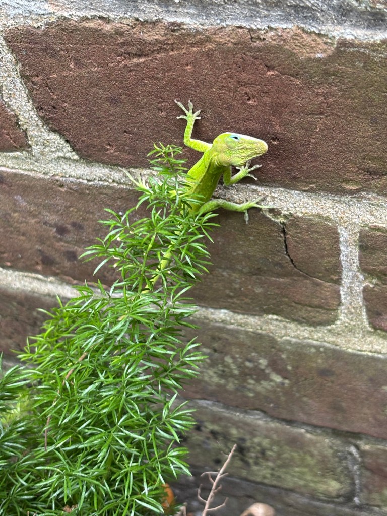 4. Our new buddy Greenie, who has taken up residence in our Potted Plant Garden in front of our apartment.