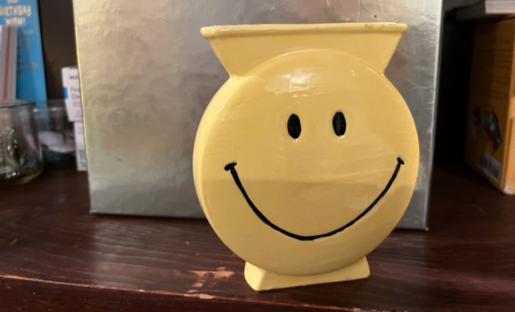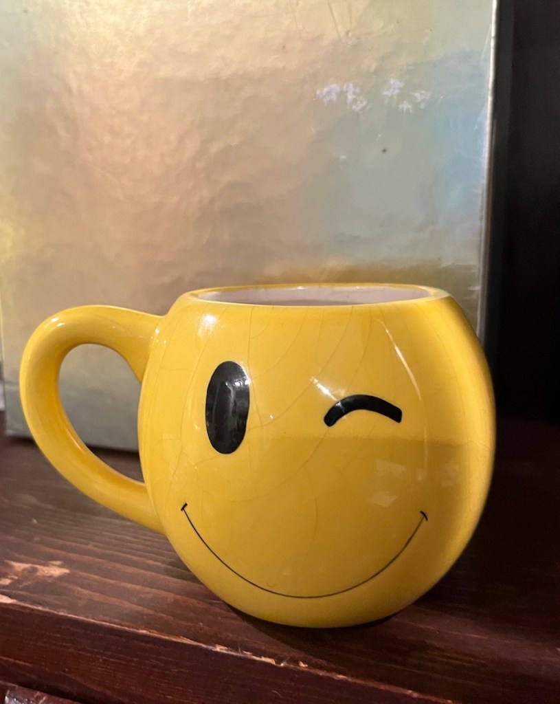 I like him because he’s always happy. No matter which way you turn or spin him. No matter what you put in him. Even hot coffee! Even with his fine line wrinkles (look at pic closely).