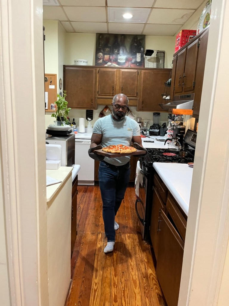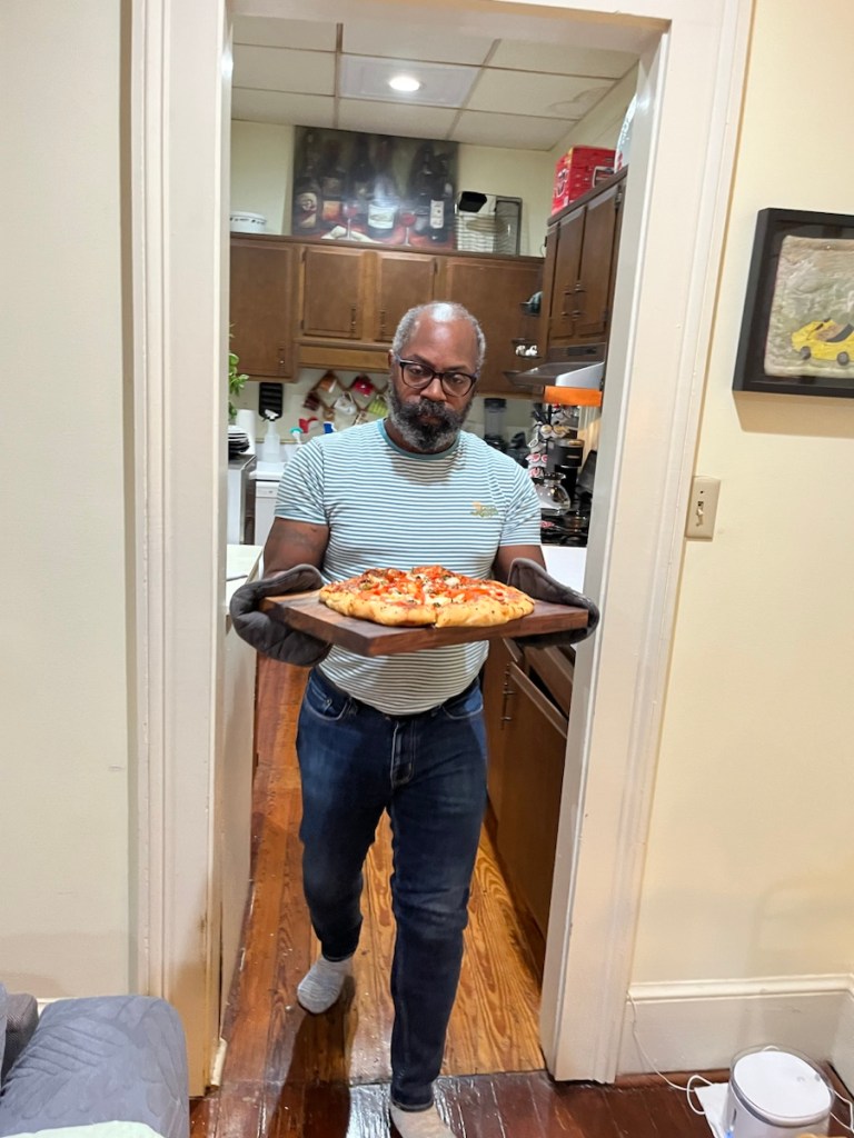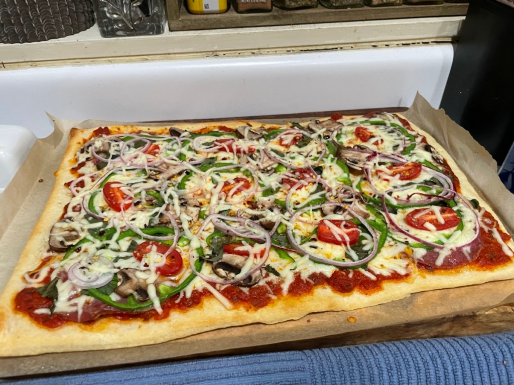The other night Robert made perhaps his very best pizza ever on his newish and he’s-so-proud-of-it pizza stone.