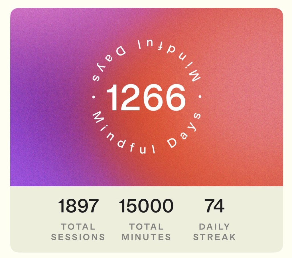 4. Reaching 15,000 minutes on my 10% Happier meditation app.