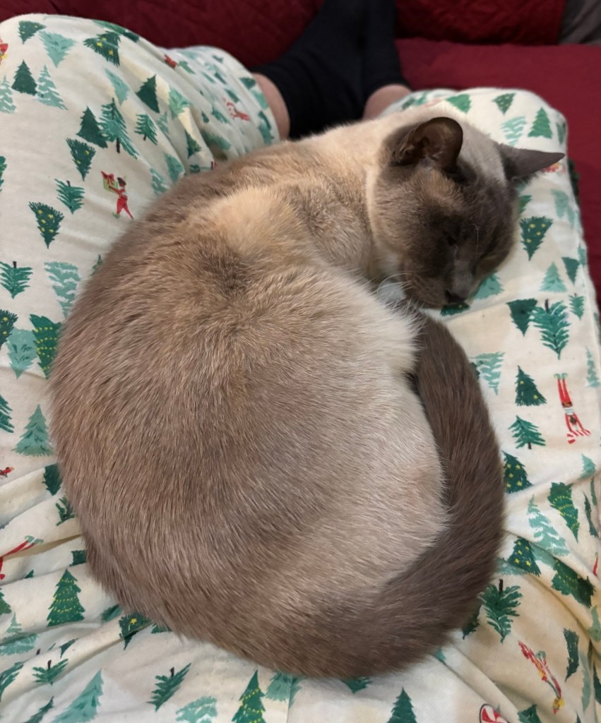 5. Benny needing his rest this morn (on my I’m-still-wearing-them Christmas jammies).