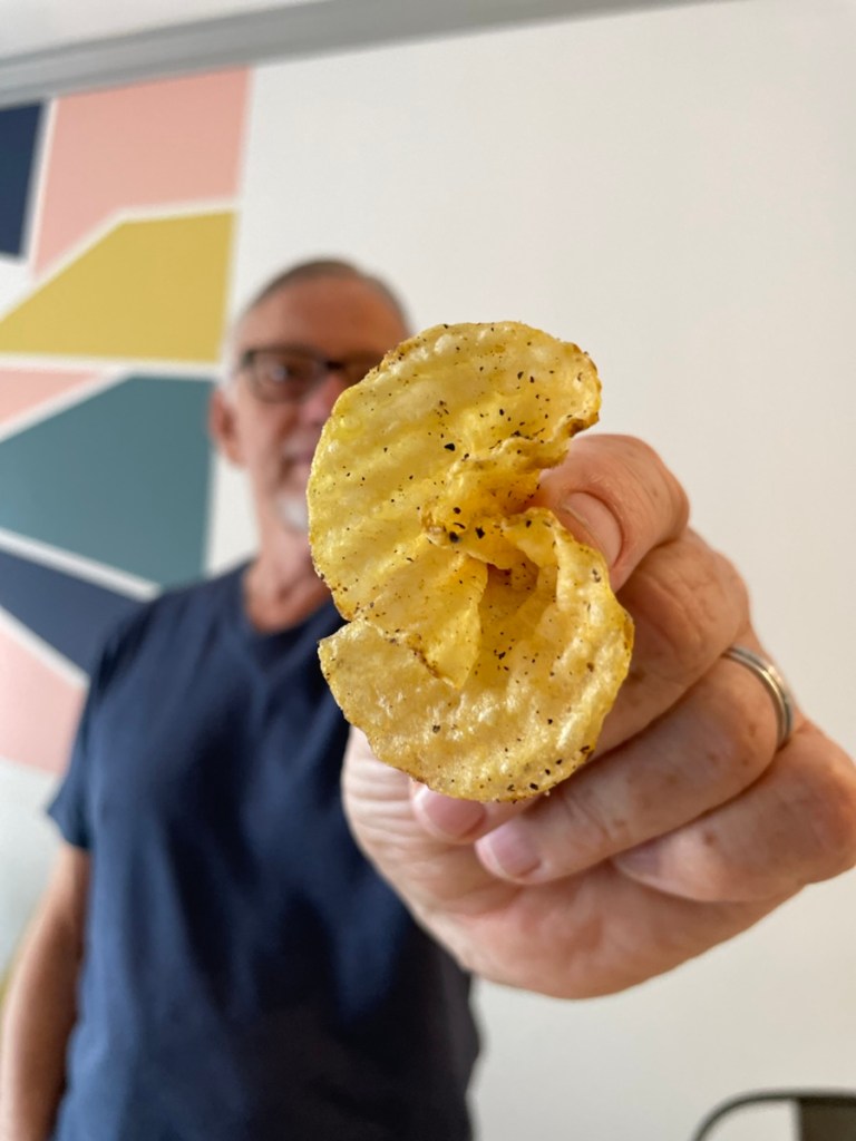 I found my initial “S” (for last name Saye) in a potato chip bag!