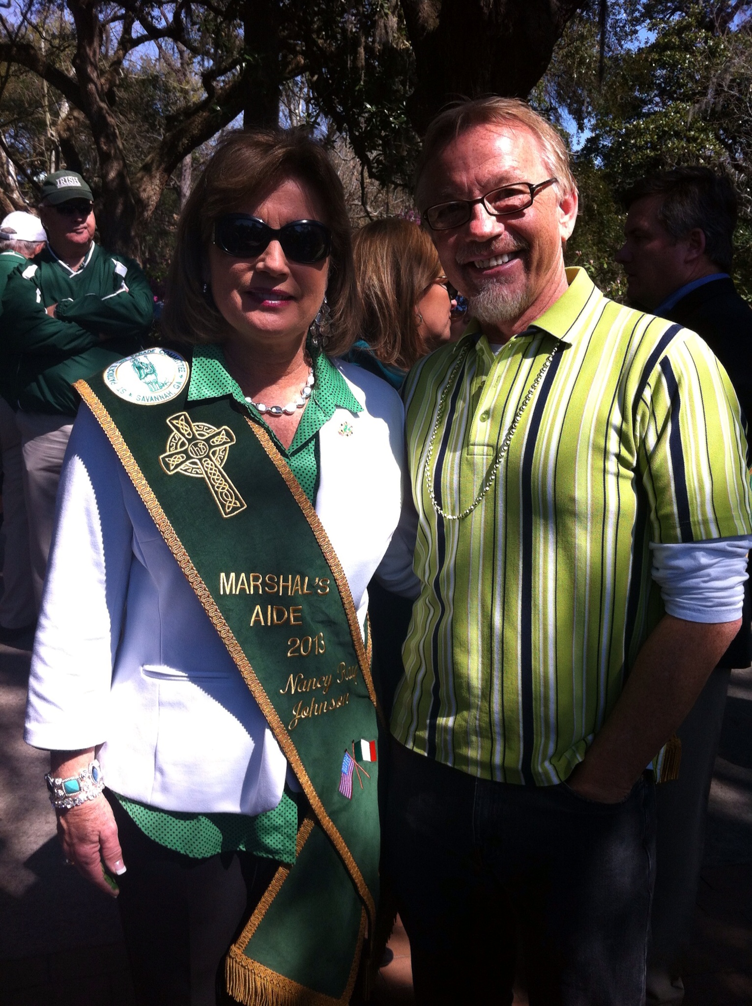 And here’s his sister, Nancy Ray Johnson, who is the second female in Savannah St. Patrick’s Day history to be the Aid to the Grand Marshal.
