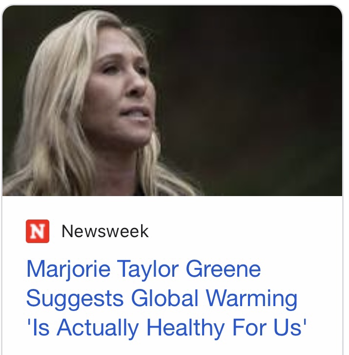 And climate change is a leftist myth. Or as my state’s insane and anti-democracy Marjorie Taylor Greene explains,