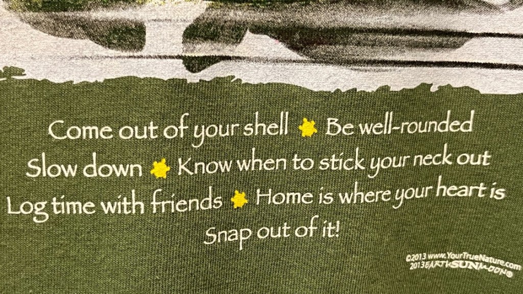Recently, when Robert and I drove over to the Savannah National Wildlife Refuge, I fell in love with a series of very cool T-shirts featuring area animals and what we can learn from them. So I decided to feature one on each T-shirt Tuesday for a while.