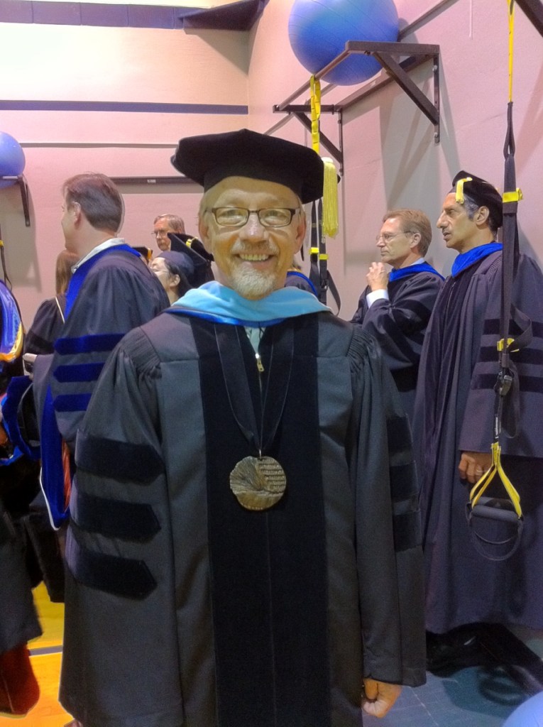 I look at all those gathered in the Dean’s Conference Room in the College of Ed, take a deep breath, and begin my defenseless defense. As I start, I see and sense Peter (“rock” in Greek) confer upon me three things: his trademark encouraging smile; a subtle and hidden to all but me “you-can-do-it!” thumbs up; and the realization, as my characters begin to breathe and speak, that something is blooming in me, and I am finding something, something I have not really grasped or undertsood until this moment in this room: I am a writer, not just a teacher of writing.